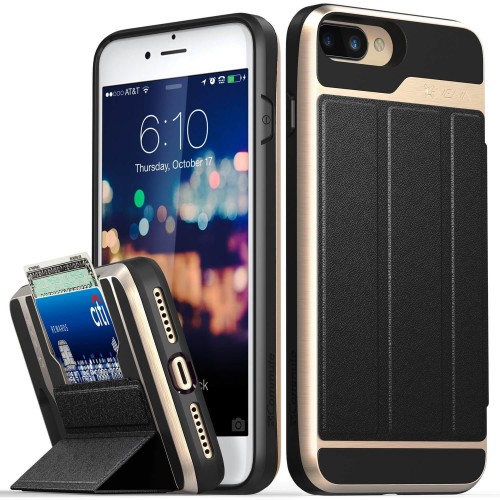 Wallet Flip Case for iPhone 7Plus by Vena (Gold)