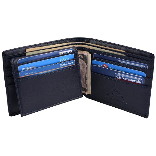 RFID Faux Leather Bifold Wallet (Dark Blue)