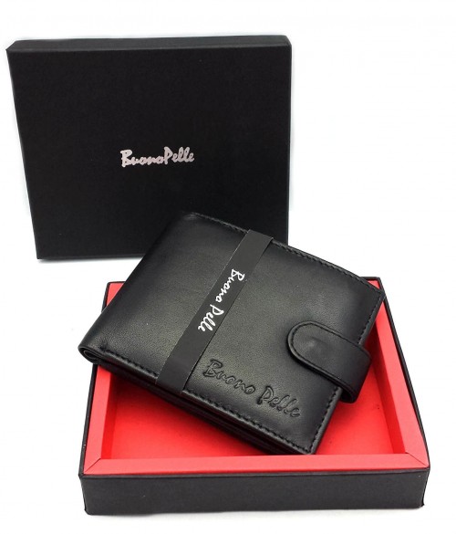 RFID Genuine Leather Wallet with Zip Coin Purse – Black