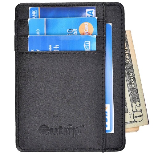Slim Wallet – RFID Leather Card Holder (Black)
