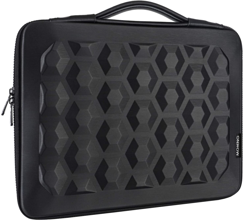 • HIGH MATERIAL QUALITY: The surface of the laptop bag is made of high quality waterproof PU leather with hard EVA via hot embossing,which can protect laptop from fluids,spills,dust,dirt and stains;combined with shockproof sponge and anti-scratch soft knitted fabric inner, ensuring no accidental drops, shocks,scratches and dents may occur to your precious device.Premium Eco material and exquisite workmanship to ensure 360°protection for your laptop.