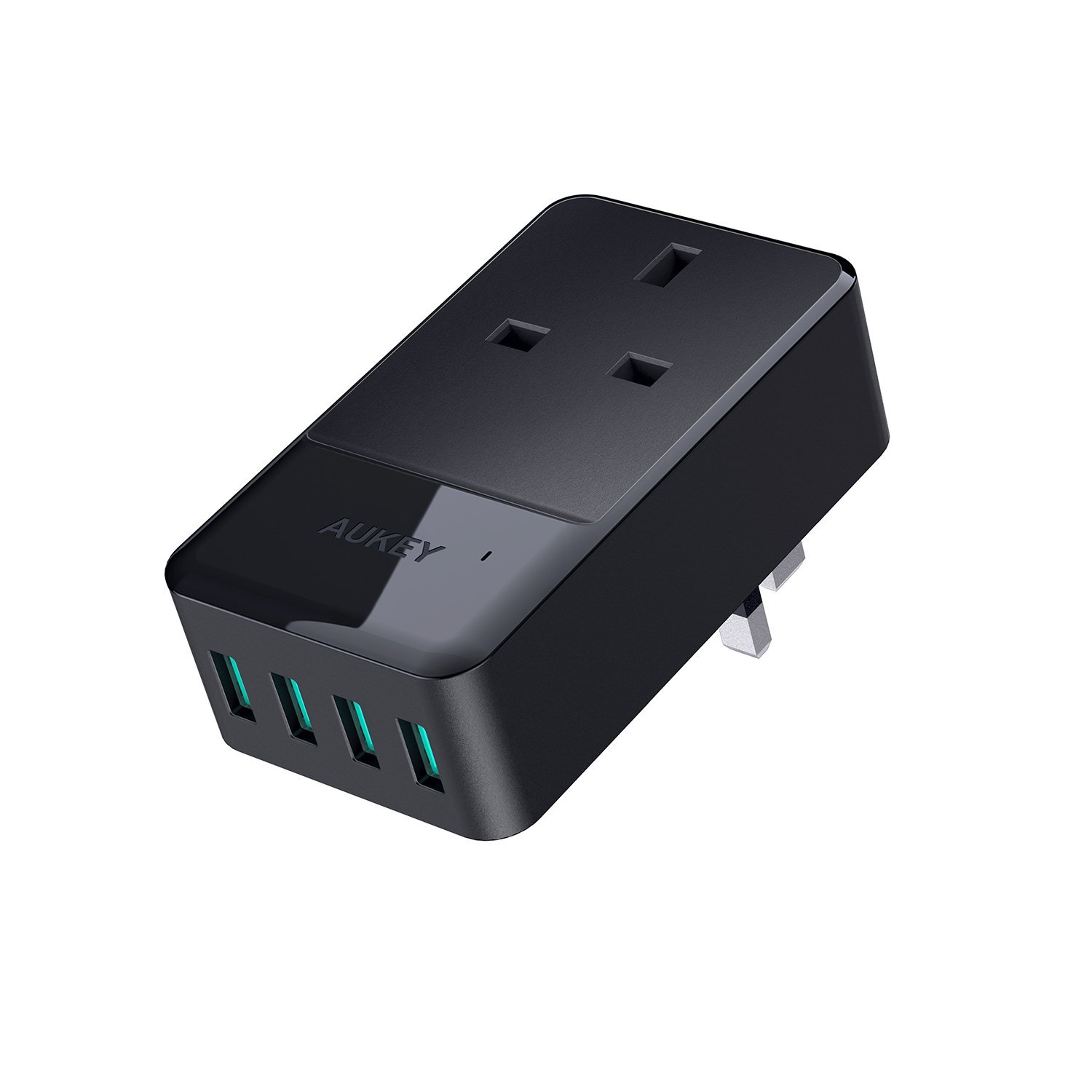AUKEY USB Wall Charger 4 Ports (5V / 2.4A * 4) with a Socket 16A for iPhone 8 / X / 7 / 7 Plus, Macbook Pro, Smartphone, Laptop, Tablet, Table Lamp, iPad etc.