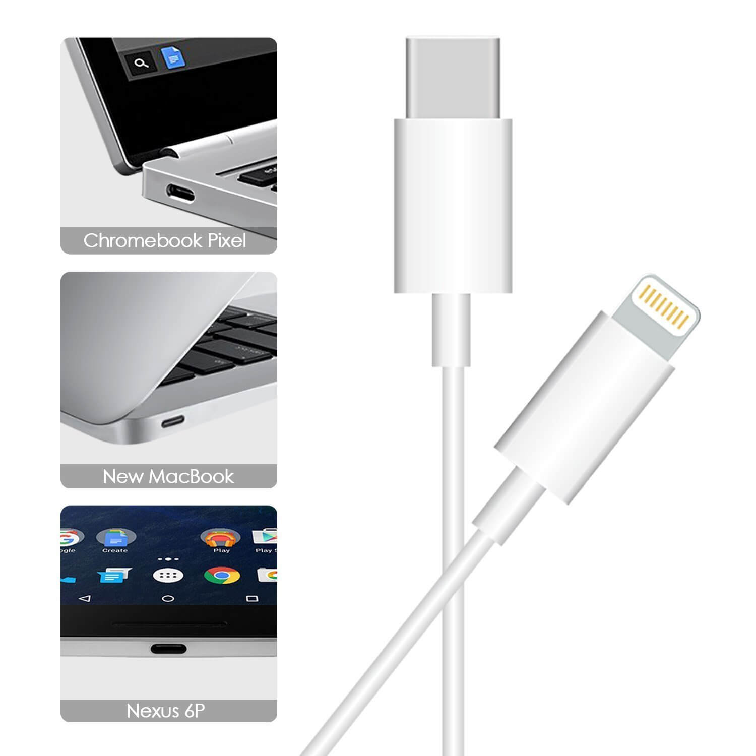 BC Master USB Type-C to Lightning Cable. Compatible with USB Type C devices connect to Apple iOS devices (works on Apple New 12 inch Retina MacBook, Chromebook Pixel, Nokia N1 Tablet and Other Type-C Devices).