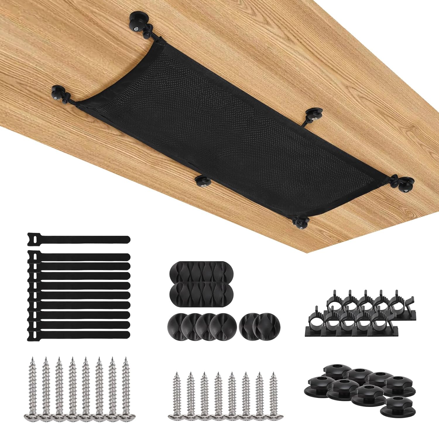 - Under Desk Cable Management Net: Banish tangled wires instantly with elastic mesh design that securely holds chargers, extensions and cables, transforming chaotic desks into clutter-free zones with no drilling tools needed