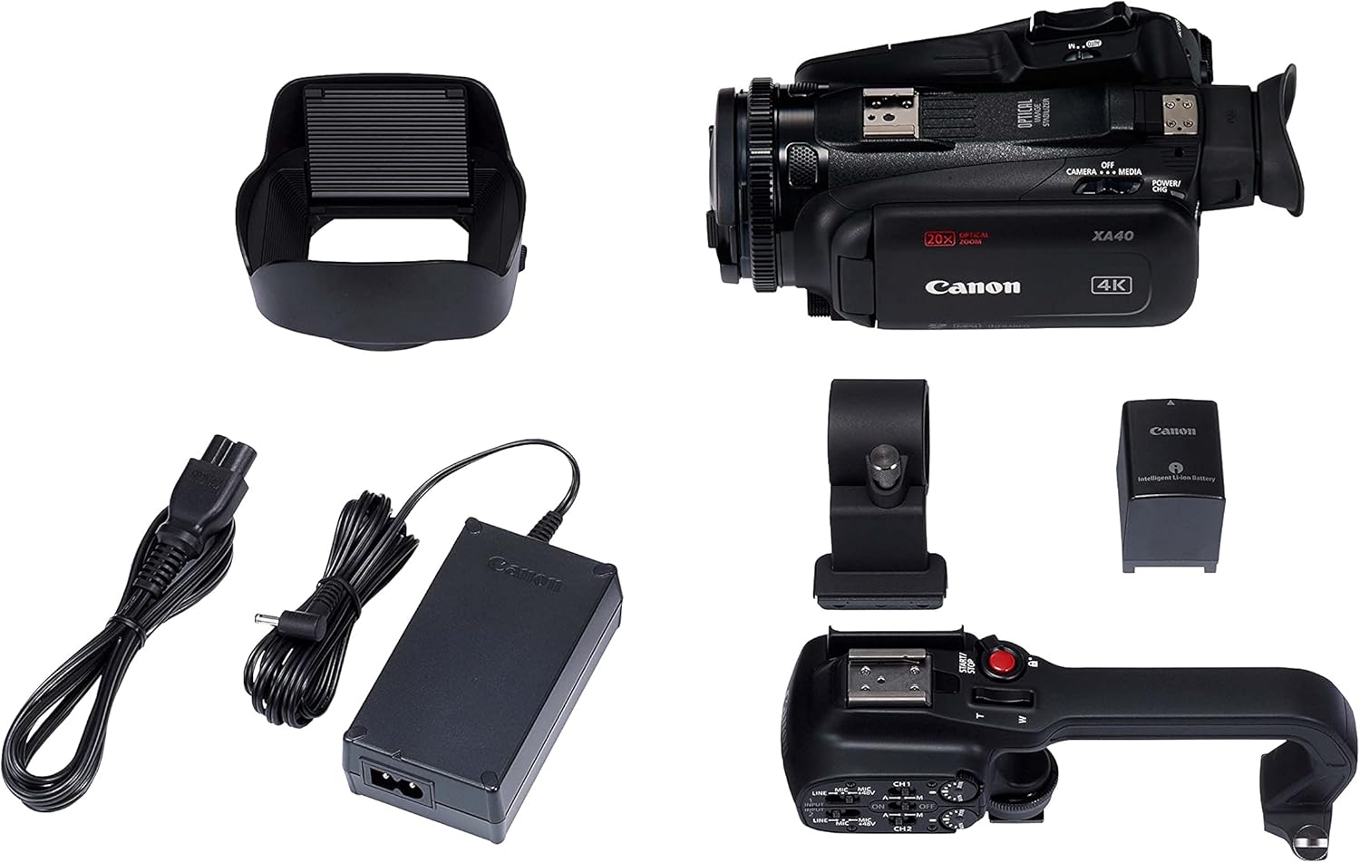 Canon XA40 Camcorder 4K (UHD Video Camera, 7.5 cm Touchscreen, 20x Optical Zoom, Large Wide Angle Range, Dual Pixel CMOS AF, 2 SD Card Slots, MP4 Video Recording) Black