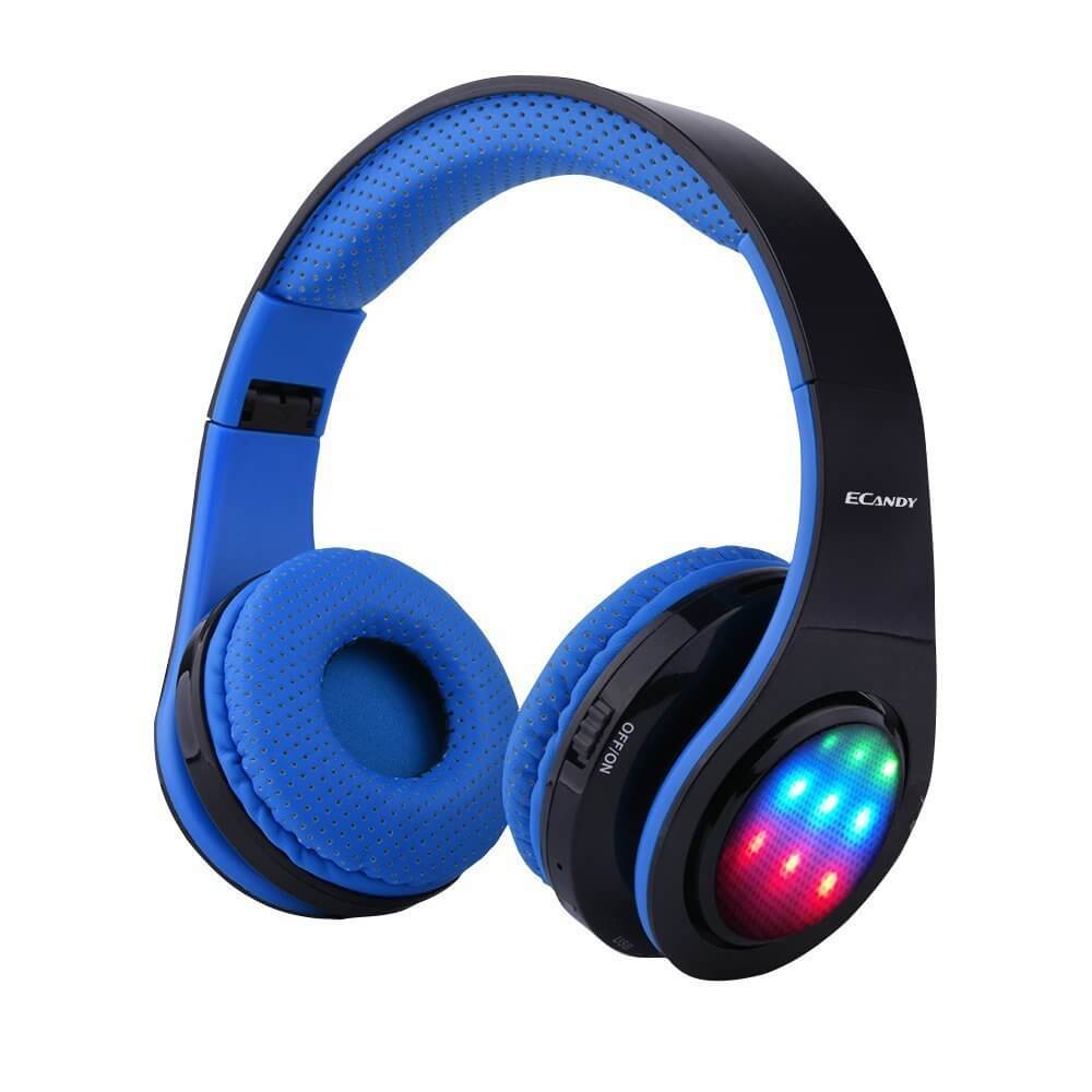 Ecandy Bluetooth Headphone with 3 LED Light Mode Stereo Music Folding Over-Ear Hi-fi Sound Built in Microphone Hands-free Wireless Calling for iPhone.