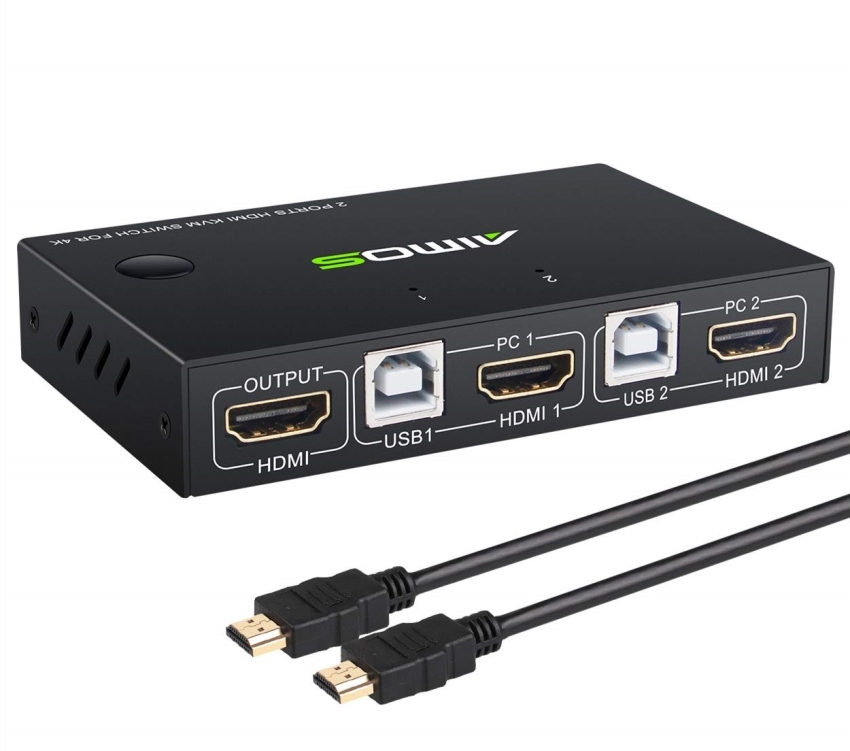 KVM HDMI Switch, USB Switch 4K HDMI Switcher Box 2 In 1 Out For 2 Computers Share Keyboard And Mouse Support 4K@30Hz for Laptop, PC With Windows/Linux/Mac System, With 2x USB, 1x HDMI Cable