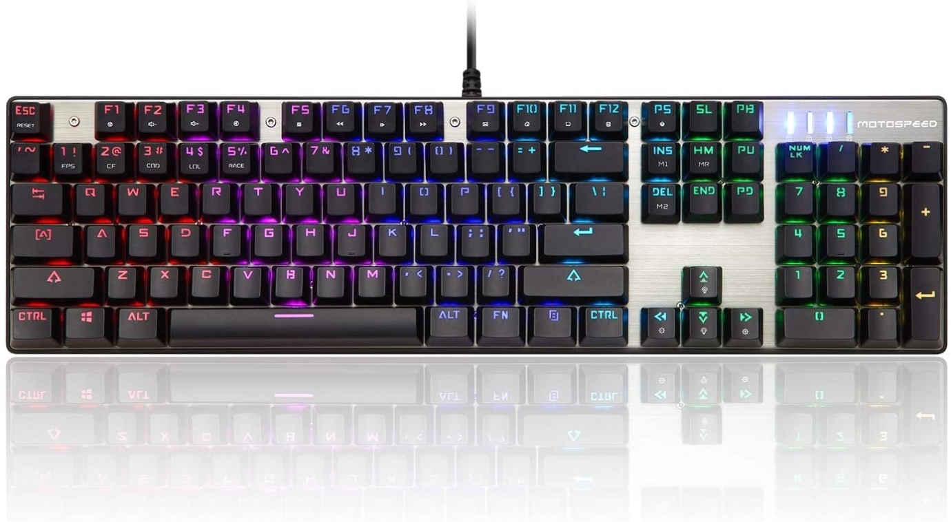• HIGH QUALITY AND RELIABLE PERFORMANCE: Ergonomic Design and High quality durable metal-ABS construction with Plate-mounted mechanical keys and switches,104 keys mechanical keyboard design completely meet any needs of your office and game