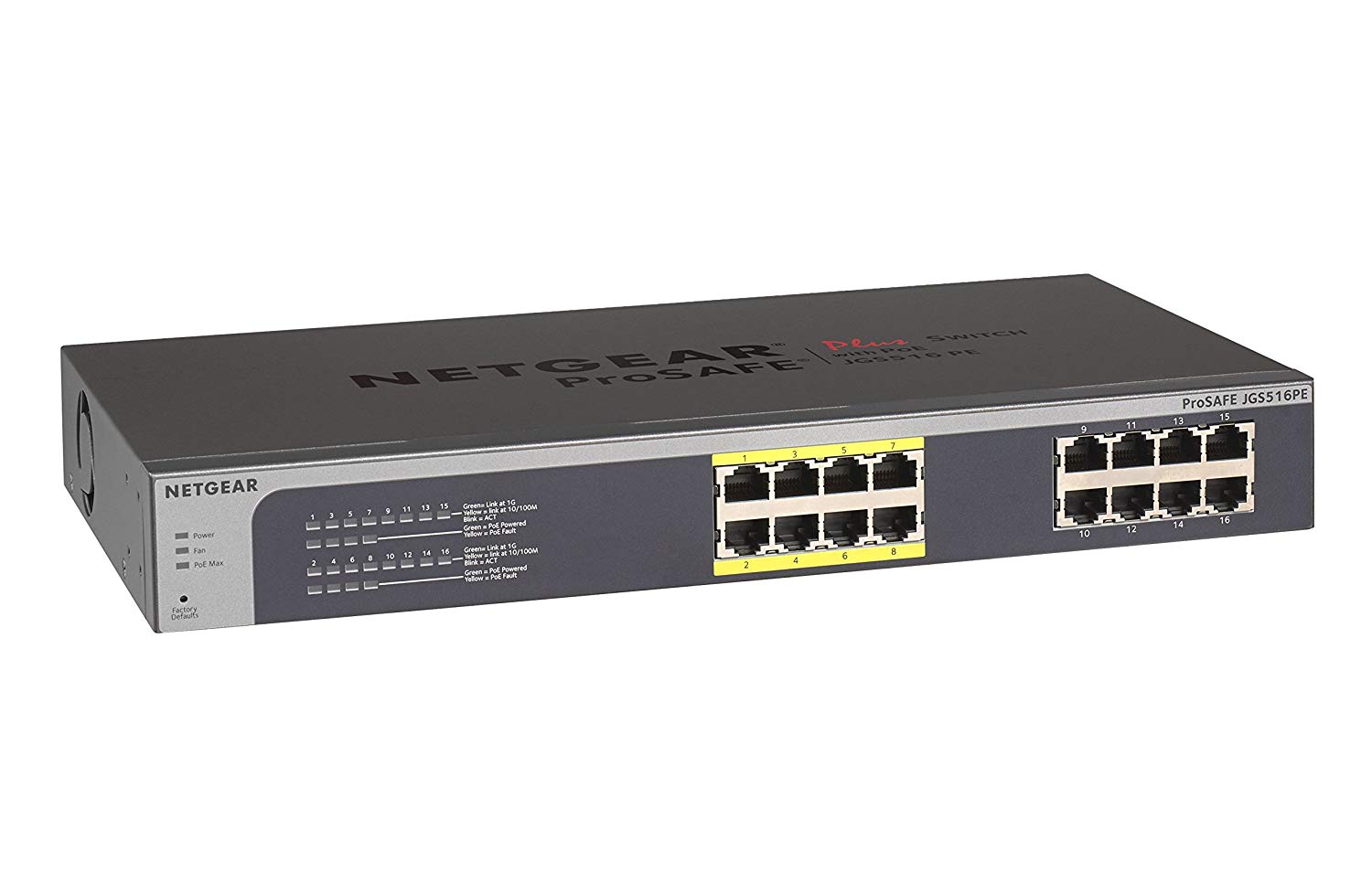 NETGEAR JGS516PE 16-Port Gigabit Rackmount PoE Smart Managed Plus Switch | 8-Port 85w Power-over-Ethernet | ProSAFE Lifetime Protection