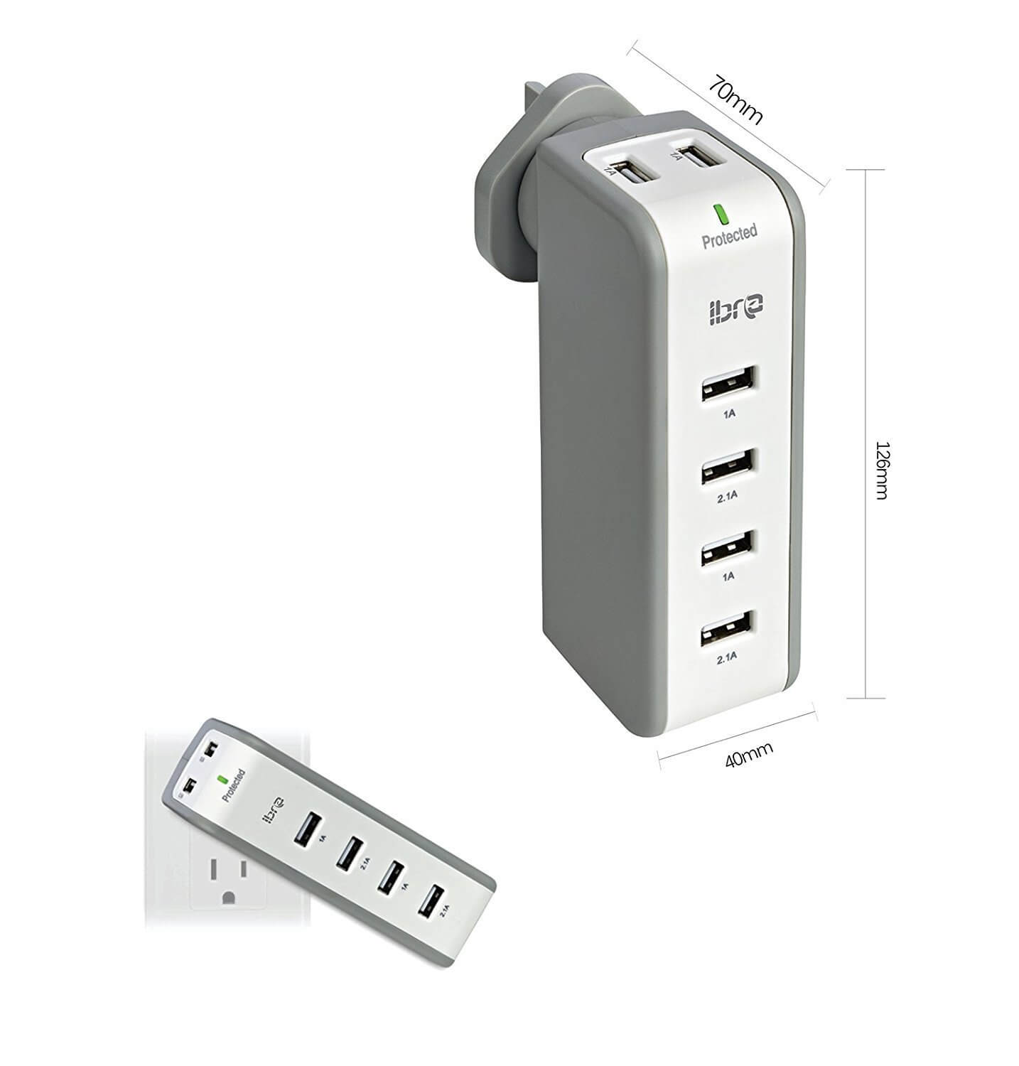 - 2 Port 2.1A allows you to charge most tablets at full speed, especially for iPad Air and iPad 4 (2.1A), and 4 Port 1A is for cell phones faster than 1.0A port